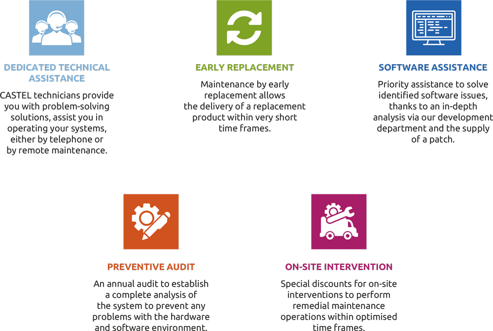 You have real support from CASTEL technicians to interact with your teams, act and address your ‘Customer’ specific issues.