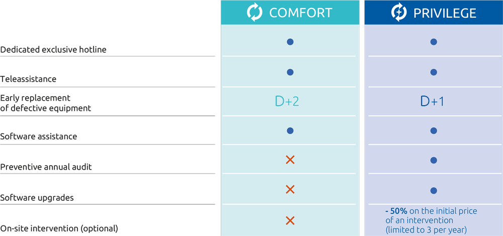 ACCORDING TO THE SELECTED LEVEL, PRIVILEGE AND COMFORT CONTRACTS COVER THE FOLLOWING SERVICES: