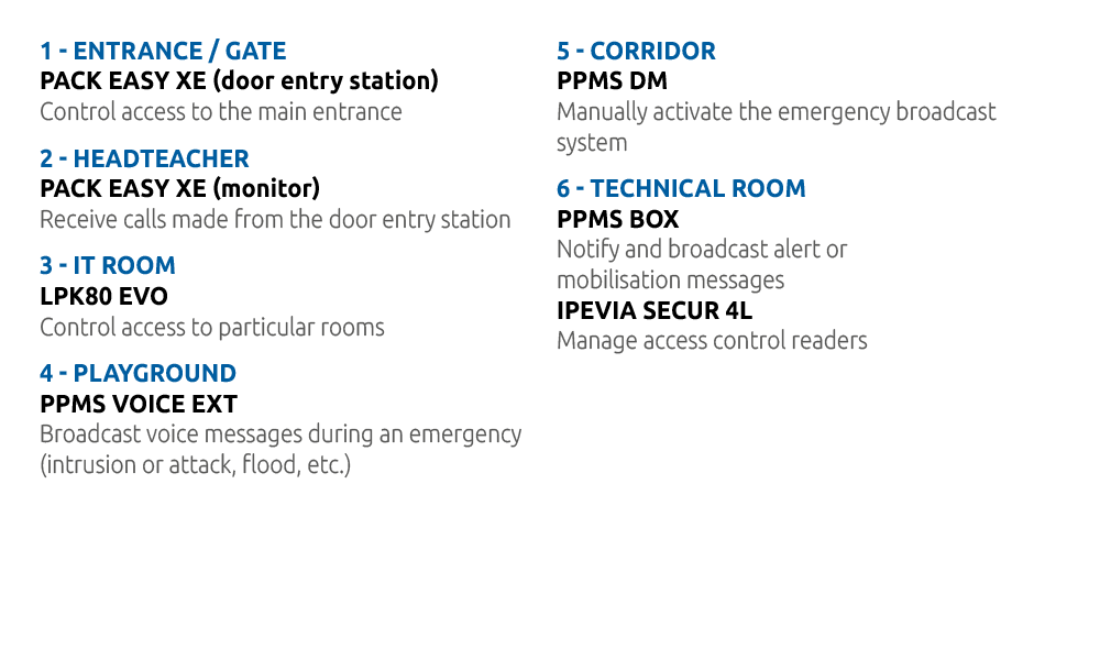 Our large range of professional intercom systems, access control or emergency notification solutions enable establishments to be more secure (schools, university campuses, nurseries, etc.)