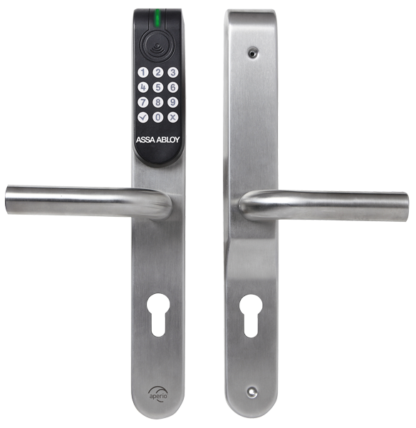 Béquille électronique Aperio® : système de verrouillage électrique avec lecteur Mifare® + clavier à codes - béquille Profil Français Européen E100