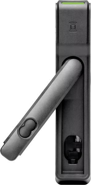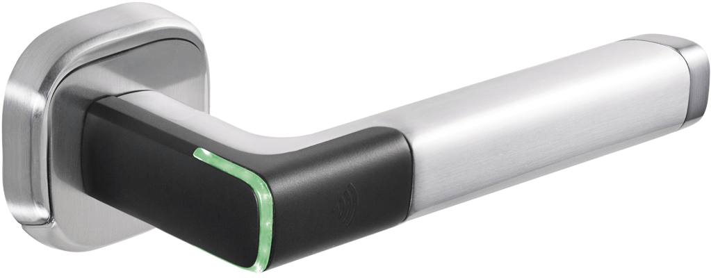 Poignée électronique Aperio® sur rosace avec lecteur Mifare® H100 ouverture droite