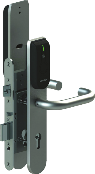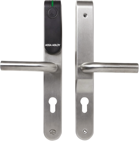Serrure électromécanique Aperio® avec ensemble béquille et lecteur Mifare® - profil Européen L100