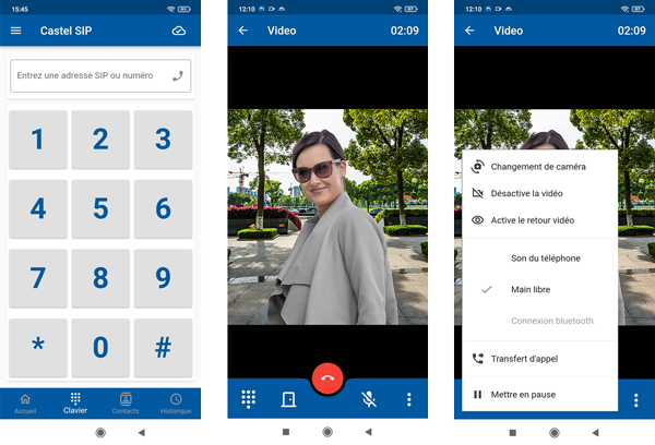 Application de vidéophonie SIP pour Smartphones et tablettes (iPhone®, iPad® et Android®) : pour plus de détails voir gamme interphonie IP avec réception sur smartphones