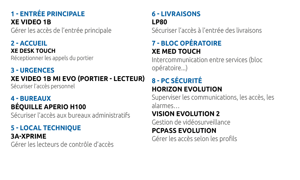 > Interphonie de sécurité dans les différentes salles, couloirs, ascenseurs, parkings (alarmes incendie, appels d’urgence)